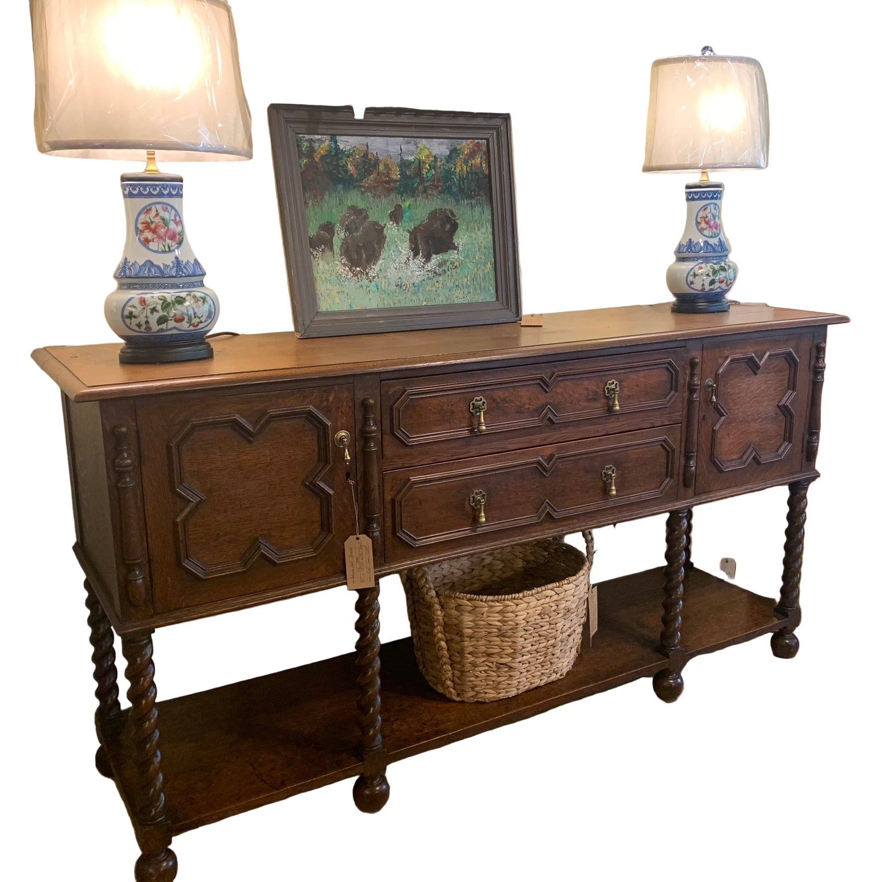 Antique Oak Barley Twist Sideboard with Pot Board Ca 1890